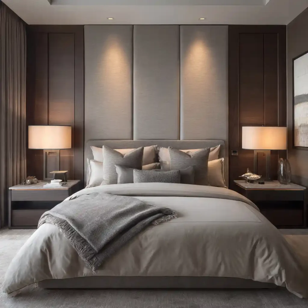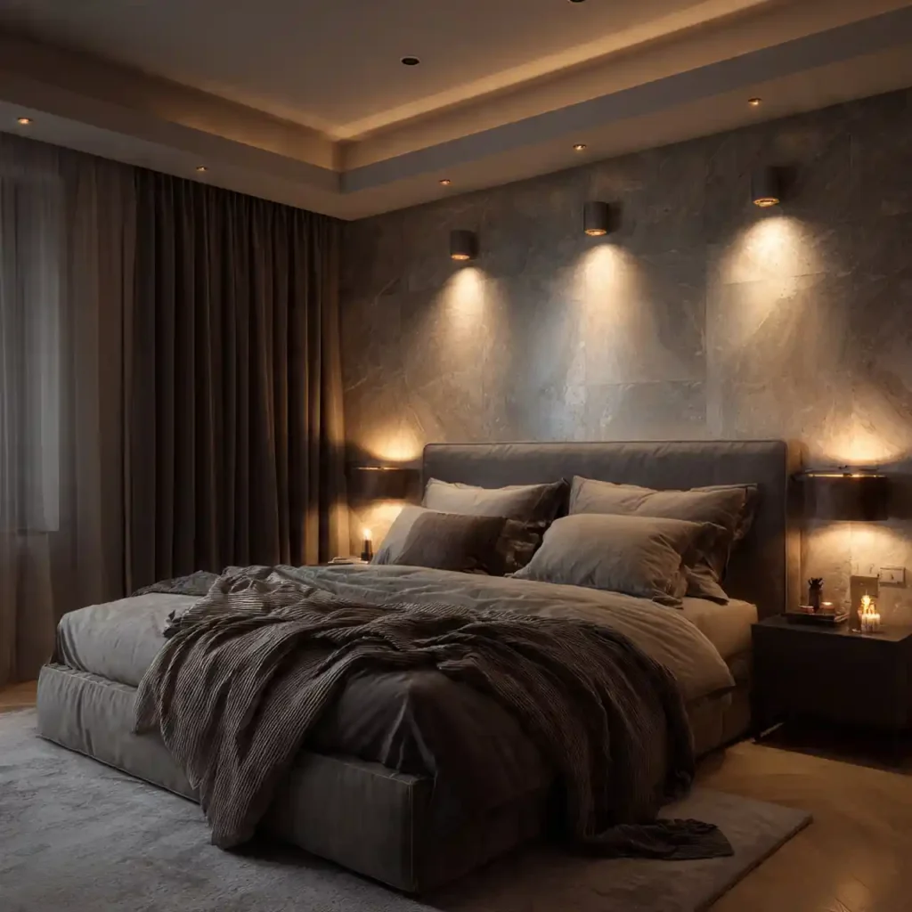 Layered lighting transforms mood instantly. Wall sconces, LED strips, and bedside lamps create warmth. Harsh overhead lights are avoided. Soft glow lighting enhances relaxation. It gives the bedroom a boutique-hotel vibe.