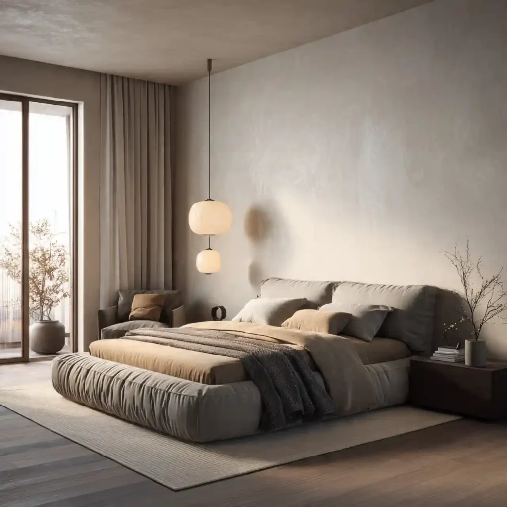 A bold accent wall defines the sleeping zone. Deep tones like charcoal, navy, or earthy brown add richness. Textured finishes such as wood or stone enhance dimension. The bed becomes the natural focal point. It adds personality without clutter.