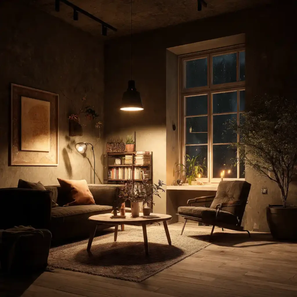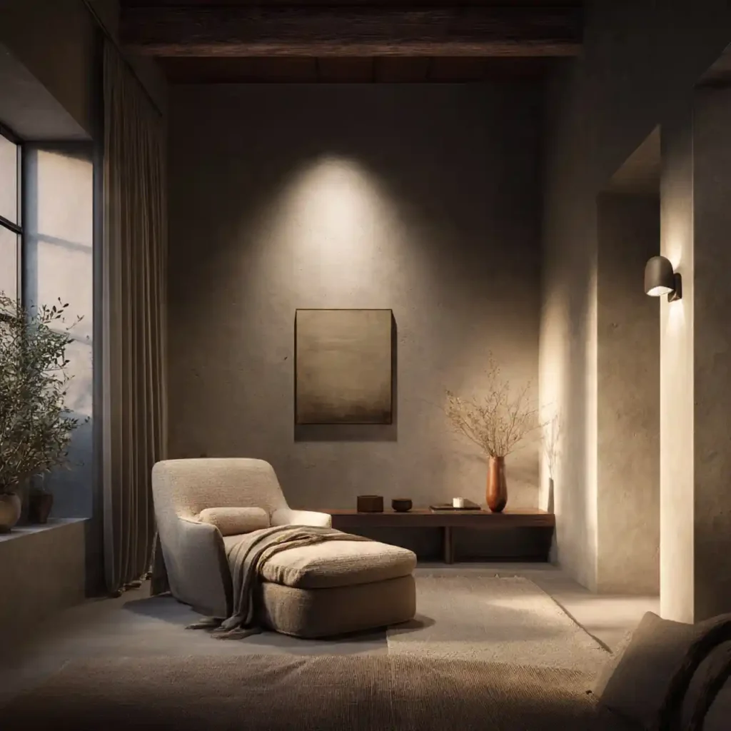 A space designed with warm evening lighting feels incredibly cozy and inviting. Shadows create depth and softness. The atmosphere becomes calm and quiet at night. Minimal decor enhances the mood. This home feels like a peaceful evening that never ends.