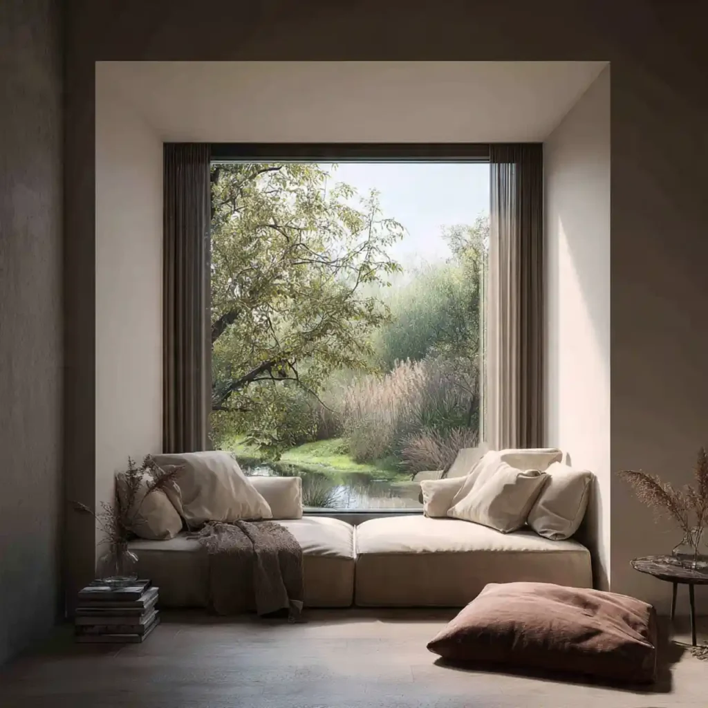 A room designed around a large window becomes a place of calm observation. Natural light and outdoor views take center stage. Seating is arranged to enjoy the view fully. Minimal decor avoids distraction. This space feels quiet and reflective.