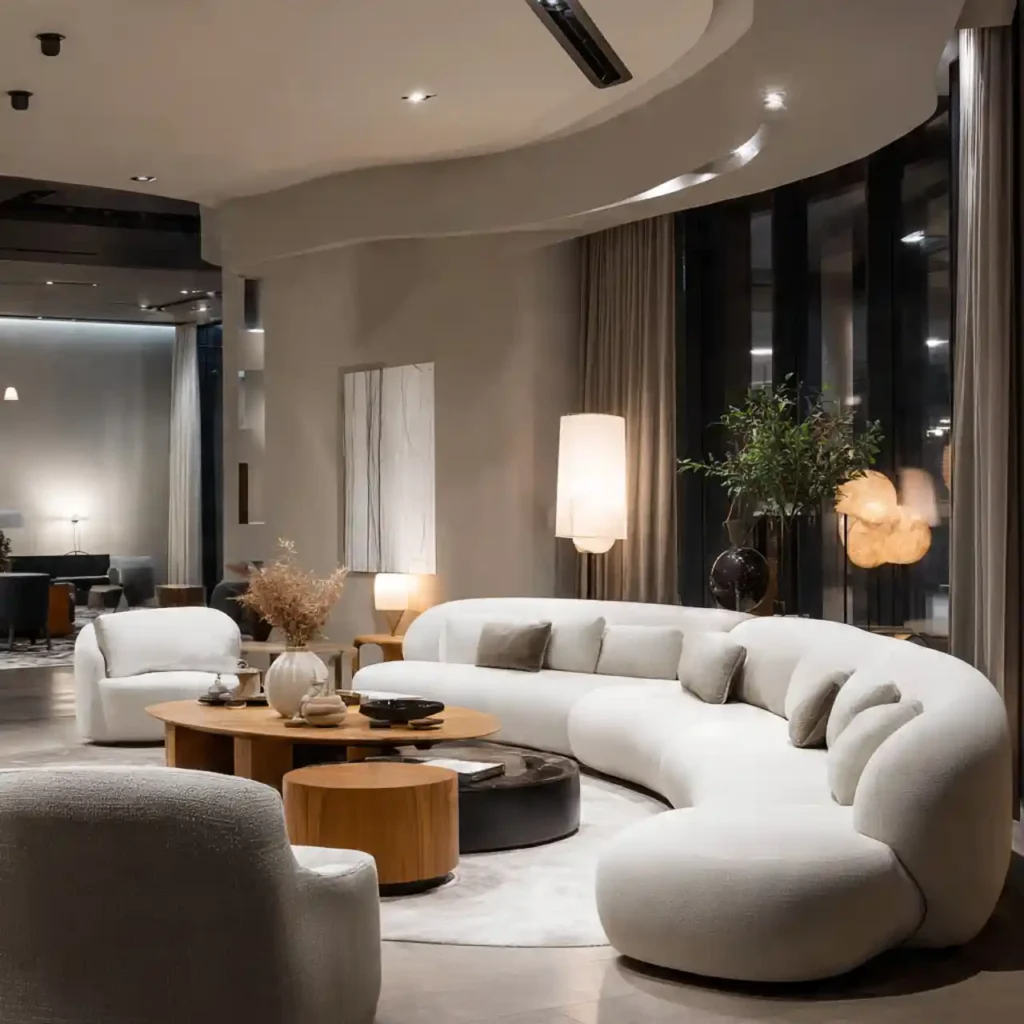 Furniture with soft curves instead of sharp edges creates a gentle and flowing look. The design feels more natural and relaxed. Rounded shapes enhance comfort visually. Neutral tones maintain calmness. This home feels soft and welcoming.