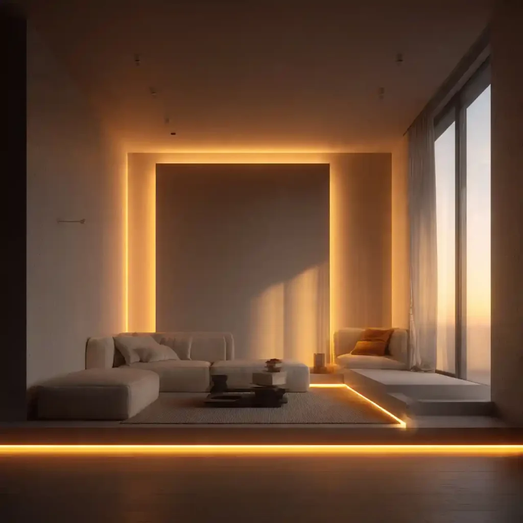 Indirect lighting hidden behind walls or ceilings creates a subtle glow. It removes harsh shadows and adds depth. The space feels calm and futuristic. Clean design enhances the effect. This home feels quiet and elevated.