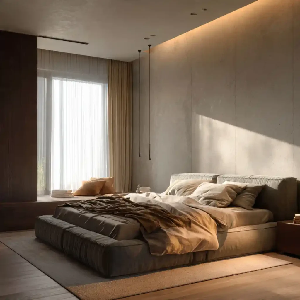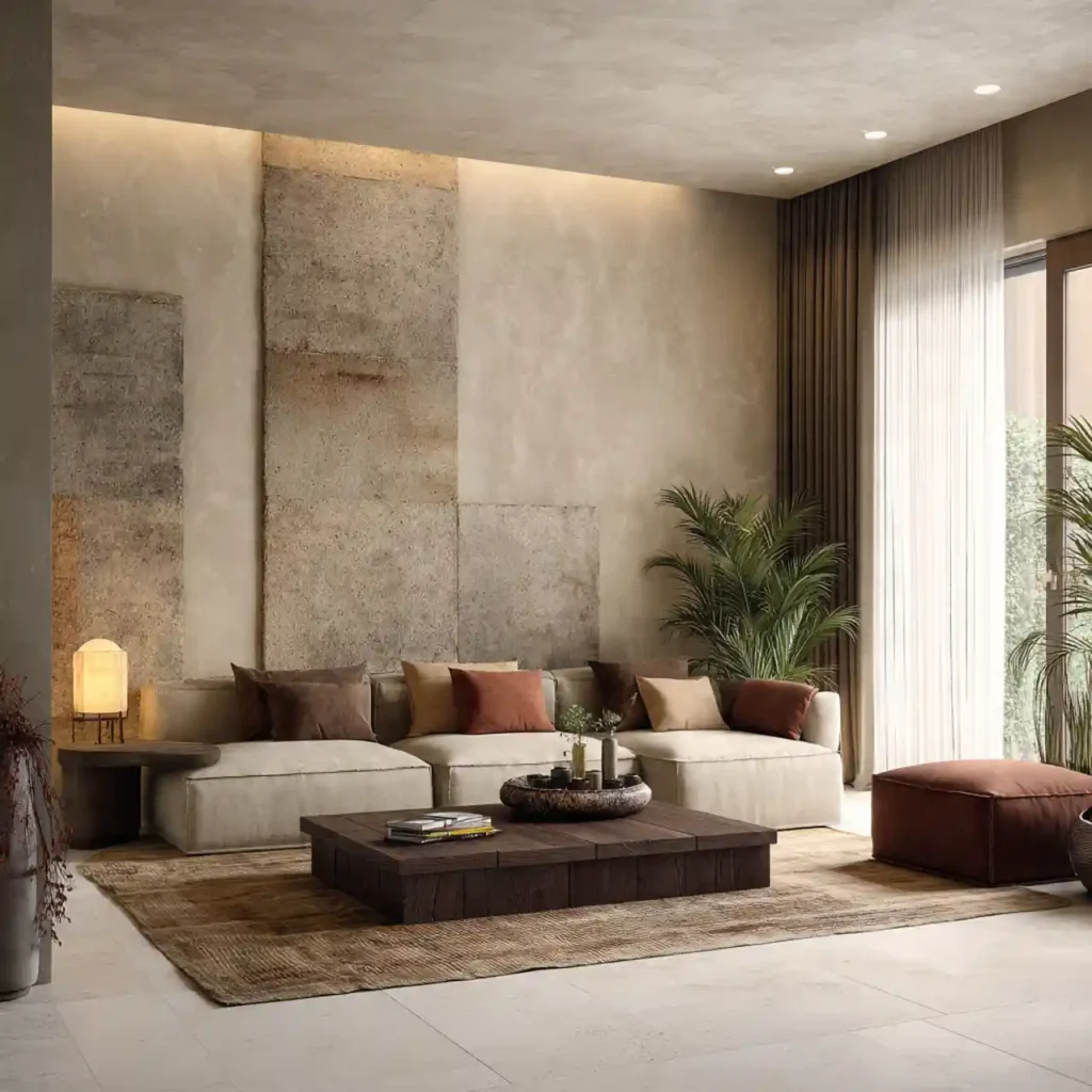 Warm earth tones combined with textured walls and fabrics create depth and comfort. The colors feel grounding and natural. Soft lighting enhances the richness of textures. Minimal decor keeps the space balanced. This home feels warm, calm, and emotionally rich.