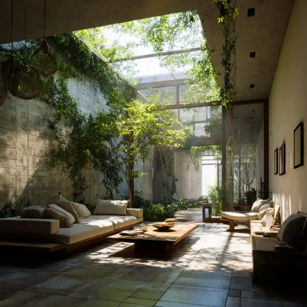 20 Indoor Courtyard Living Rooms with Luxury Resort Feel