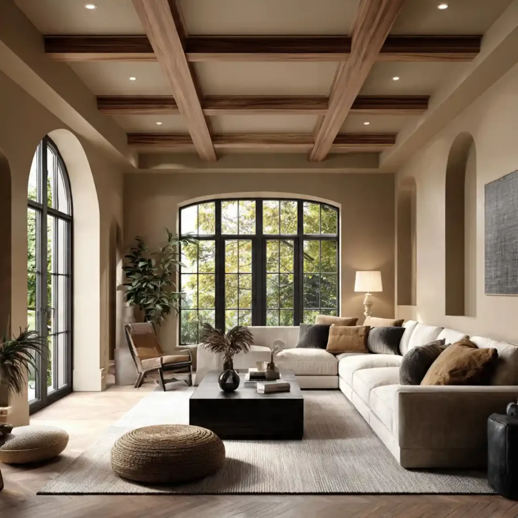 Ceilings are gaining attention as a major design feature. Painted ceilings, wood paneling, and decorative beams add dimension. This technique draws the eye upward. It enhances architectural character instantly. The “fifth wall” is becoming a creative playground.