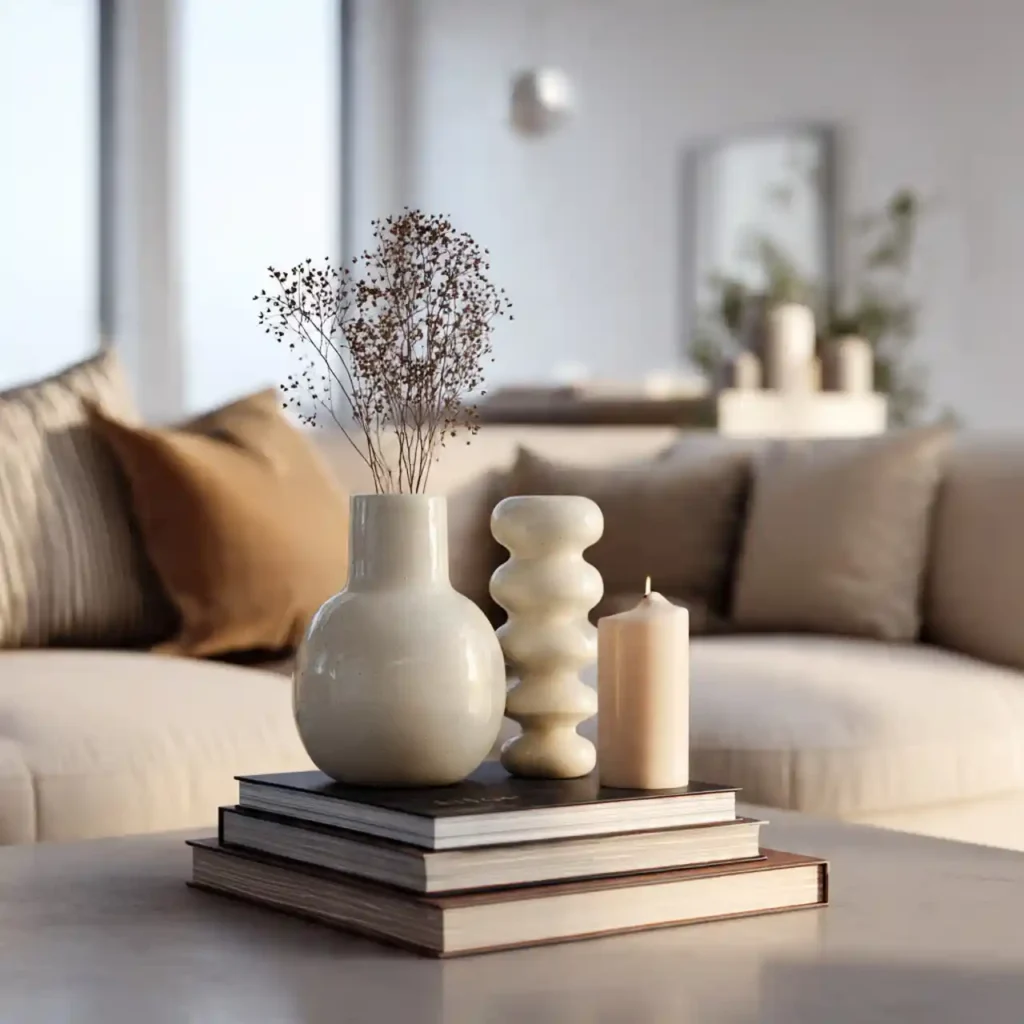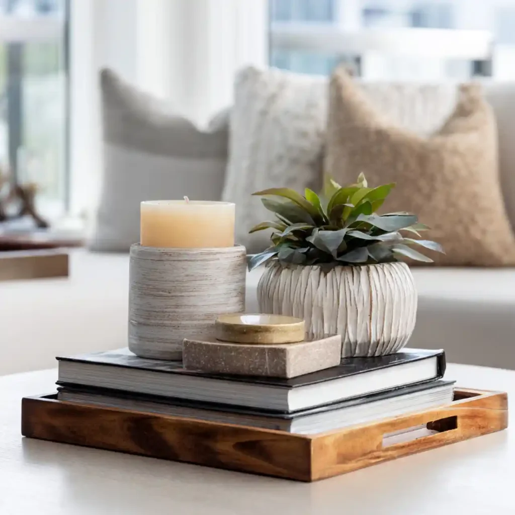 Designers never leave coffee tables empty or overcrowded. They layer books, trays, candles, and small décor pieces. Varying heights create movement. A tray keeps items organized. The result feels curated rather than cluttered.