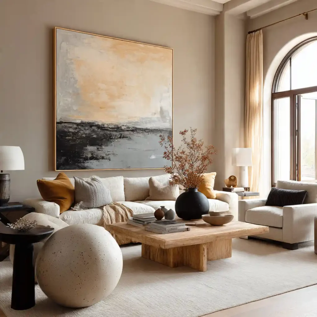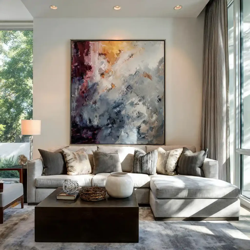 Instead of many small frames, designers prefer one oversized artwork. It makes a stronger impact. Large art anchors the wall visually. It reduces clutter. It also makes rooms feel thoughtfully styled.