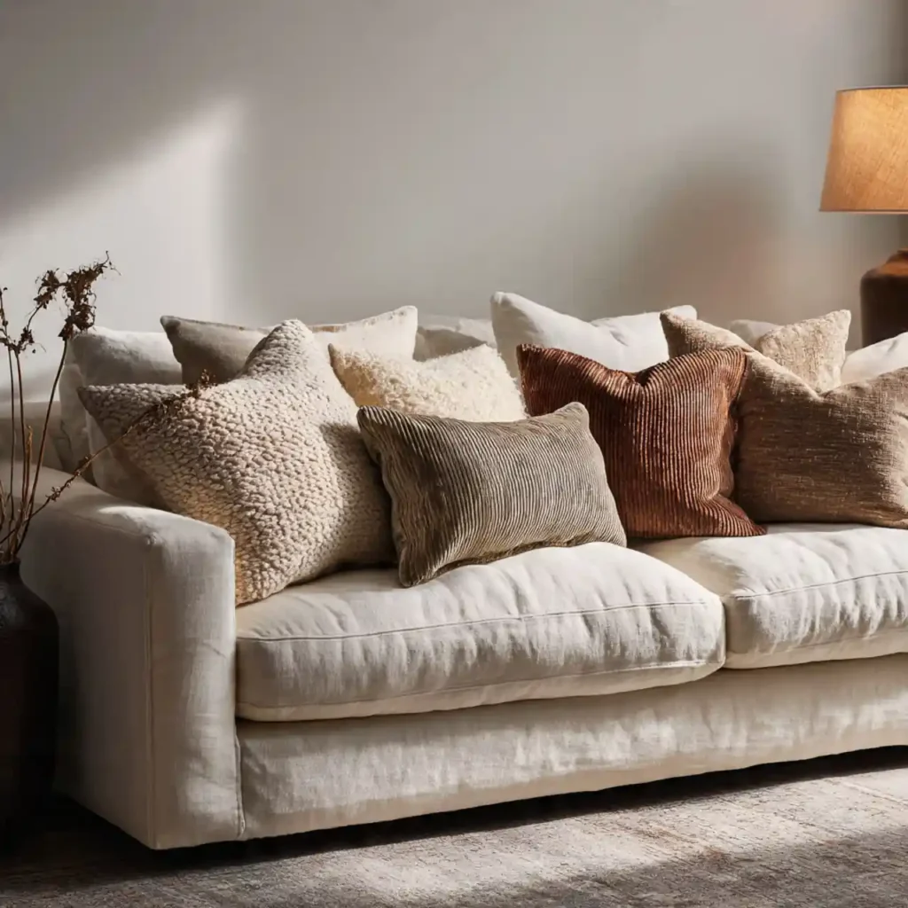 Different sizes and textures create depth. Designers mix patterns carefully to avoid chaos. Start with larger neutral cushions, then add smaller accent pillows. Layering makes sofas feel plush. It adds comfort and style.