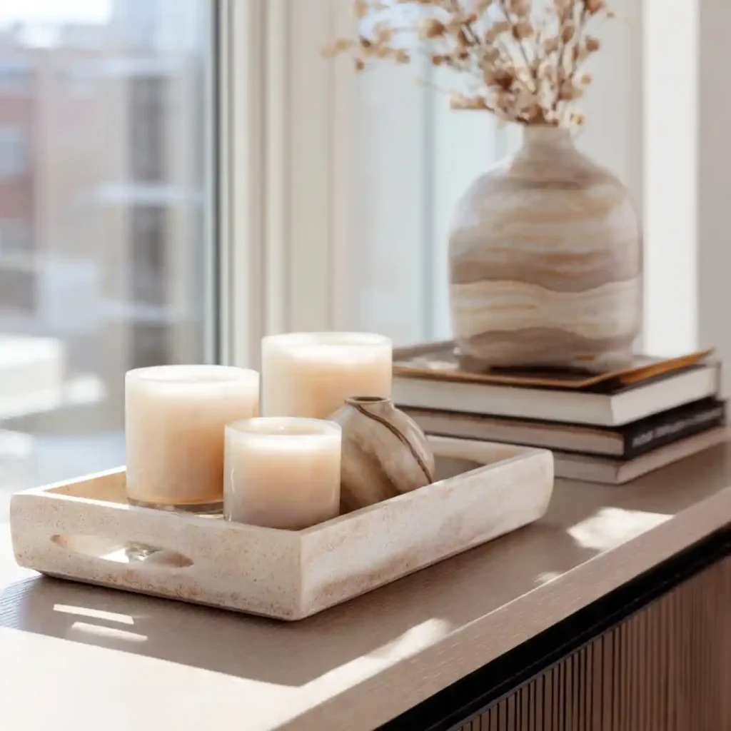 Trays group small items into a cohesive display. Designers use them on coffee tables and consoles. They add structure to styling. It keeps accessories organized. Even everyday items look intentional.