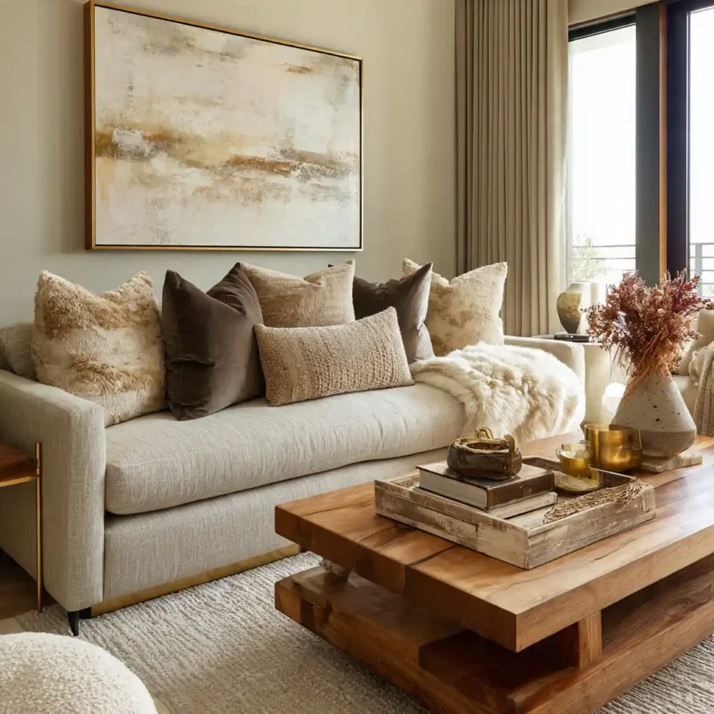 Flat rooms feel lifeless. Designers mix linen, wood, velvet, metal, and glass to create depth. Texture layering makes neutral spaces feel rich. It adds warmth and visual interest. Even a monochrome room can feel dynamic with varied textures.