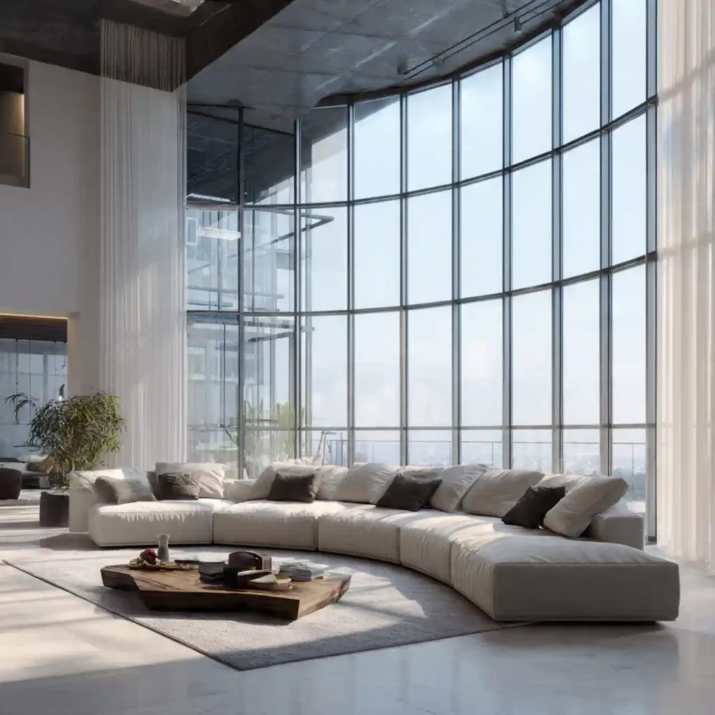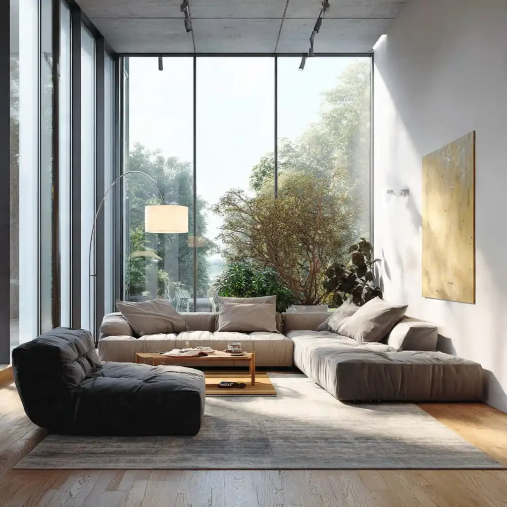 Position seating to maximize panoramic windows. Keep furniture low-profile. Use sheer curtains to let in natural light. Minimal accessories maintain openness. This layout feels ultra-luxurious, airy, and connected to the outdoors.