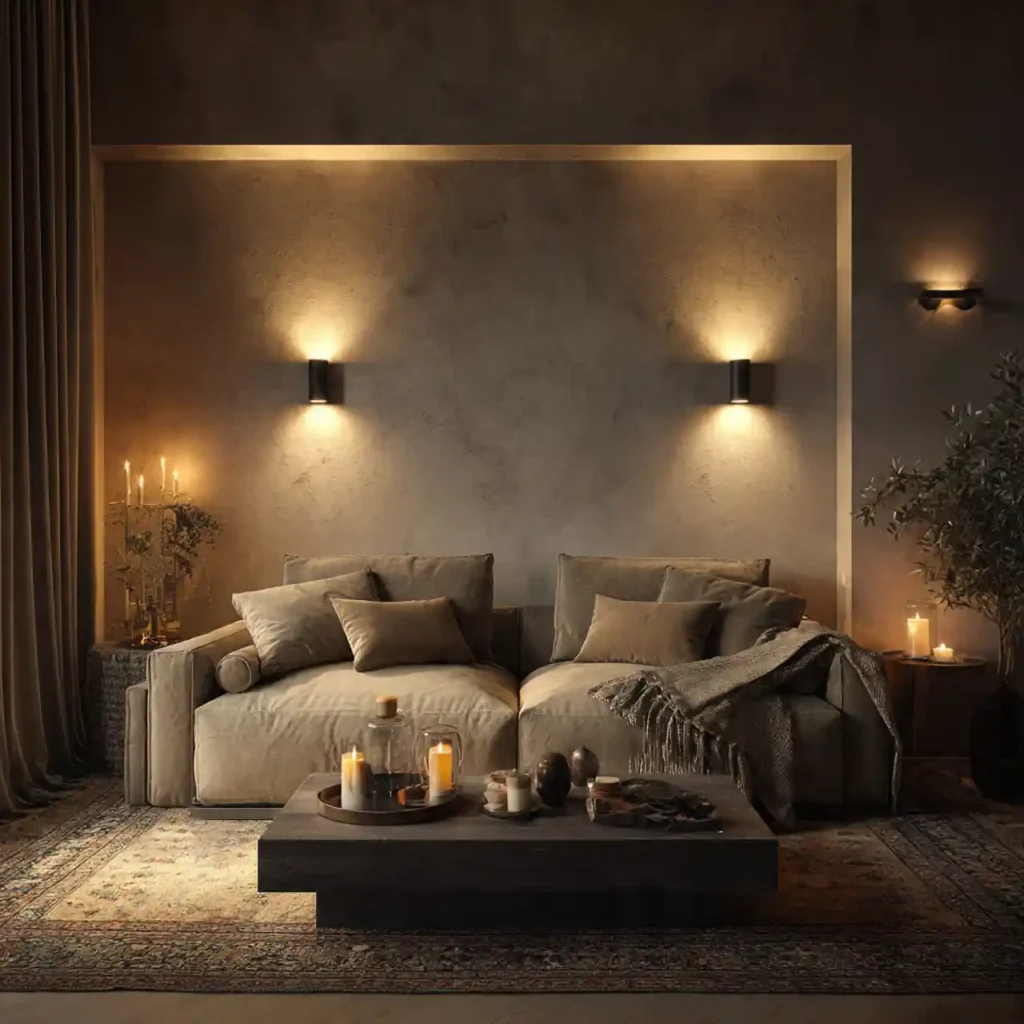 Atmosphere begins with lighting, and relying on a single ceiling fixture flattens the mood instantly. Layered lighting using floor lamps, table lamps, wall sconces, and subtle LED strips creates depth and softness. Warm tones around 2700K make the room feel inviting rather than harsh. Dimmers allow you to shift from daytime brightness to evening intimacy. The result is a living room that feels adaptable and emotionally comfortable.