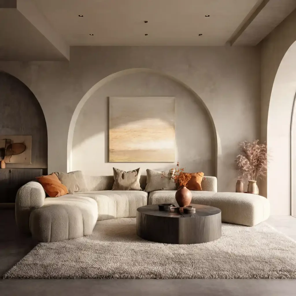 Rounded sofas or coffee tables feel softer than sharp edges. Curves promote flow and visual comfort. They make a space feel welcoming rather than rigid. Organic shapes subtly influence emotional response. The overall vibe becomes more relaxed.