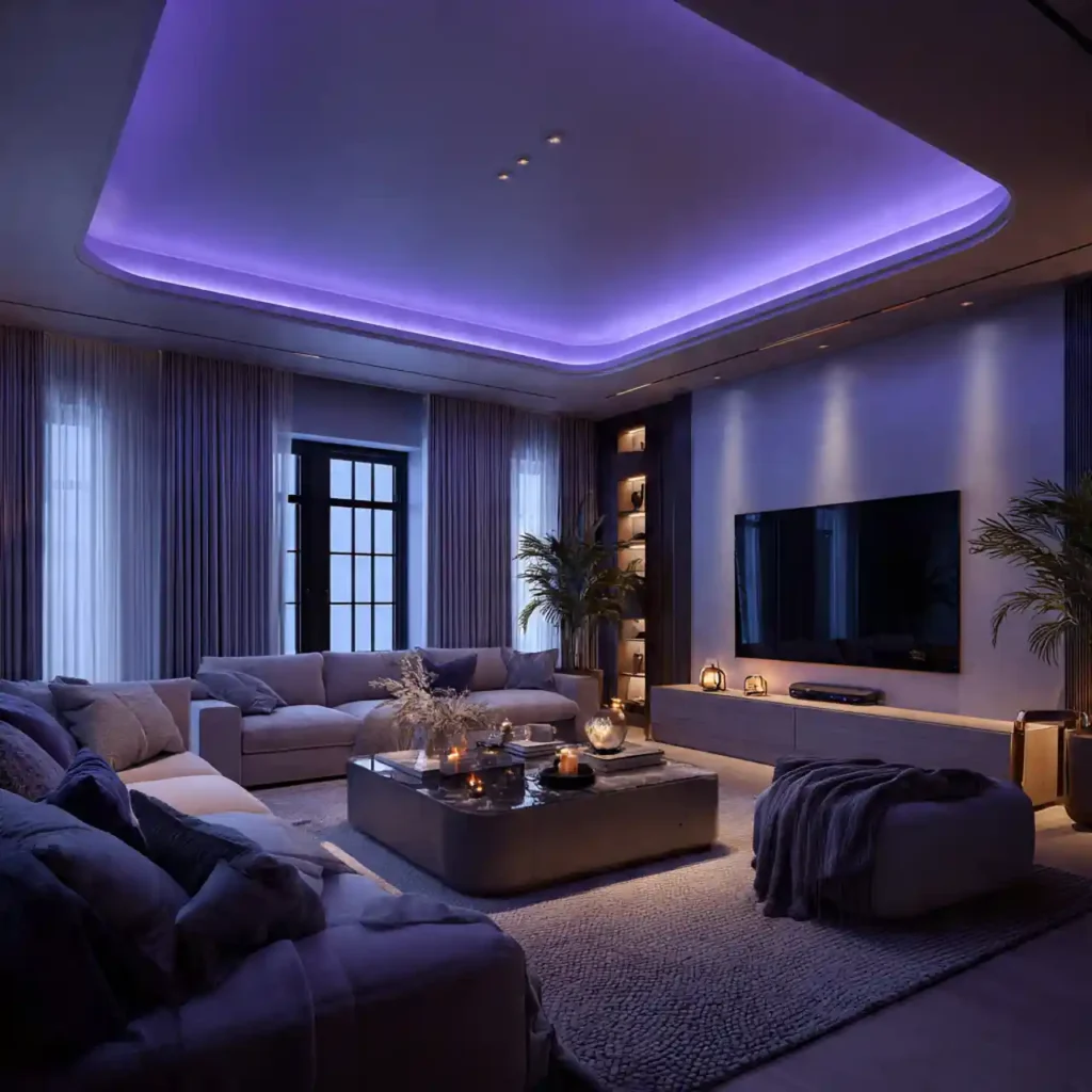 Indirect lighting hidden in ceiling coves or behind shelves creates glow without glare. This technique eliminates harsh shadows. It highlights architecture rather than fixtures. Soft perimeter light makes evenings feel luxurious. Subtlety is key to mood design.
