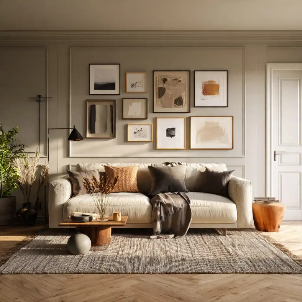 Artwork influences emotional tone instantly. Choosing muted, cohesive art pieces creates harmony. Oversized frames add sophistication. Avoiding overly bright colors keeps the mood balanced. A curated wall transforms blank space into personality.