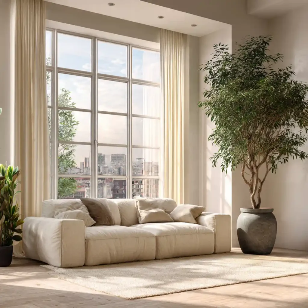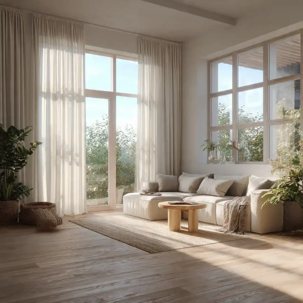 Natural light filtered through sheer curtains feels gentle and cinematic. Harsh daylight becomes diffused and calming. The movement of fabric adds life to the space. Sheers also soften hard window frames visually. This subtle change elevates the mood significantly.
