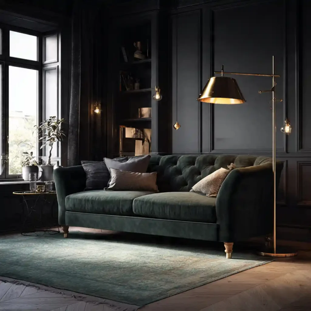 Dark shades like charcoal, forest green, or navy instantly create drama and intimacy. When paired with soft textures and warm lighting, deep colors feel luxurious instead of heavy. Painting all four walls in a rich tone creates a cocoon effect. Contrast with lighter furniture keeps the balance refined. This design instantly changes the emotional energy of the room.
