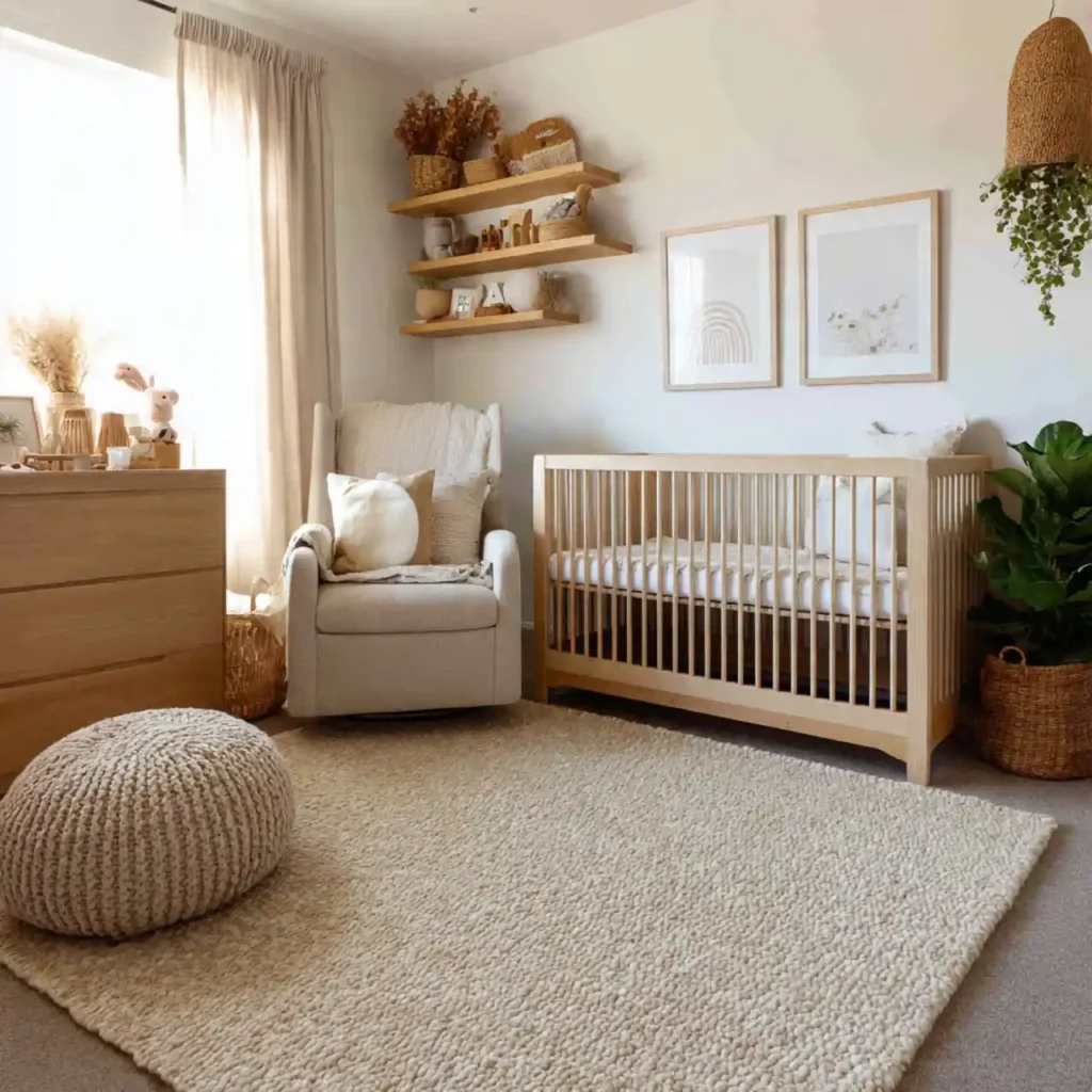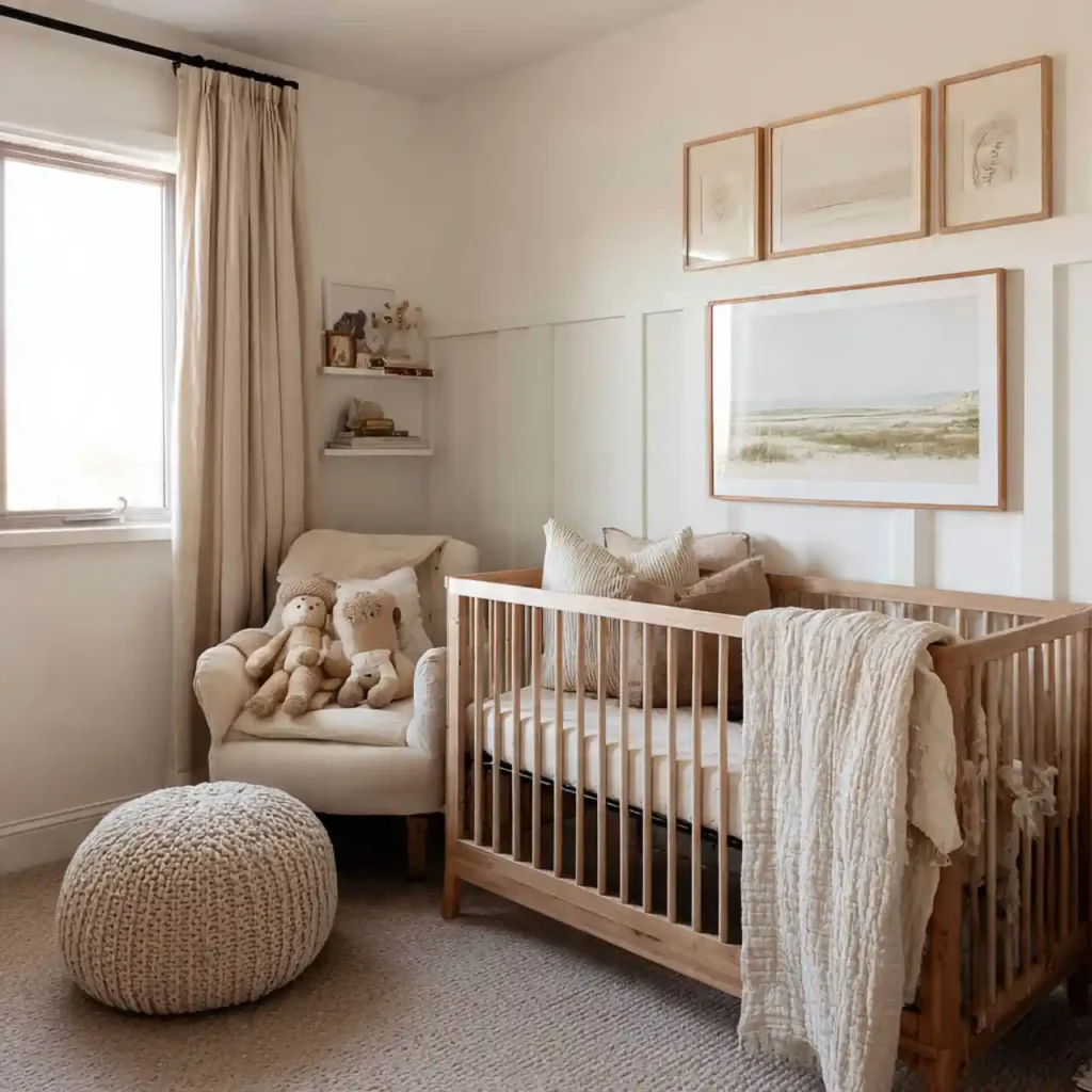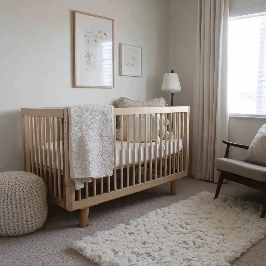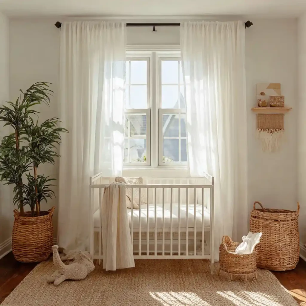 Natural fabrics like linen and cotton add softness and comfort to the nursery. These materials are breathable and safe for babies. Neutral tones keep the design cohesive. Layering textures enhances depth. This creates a cozy and relaxing environment.