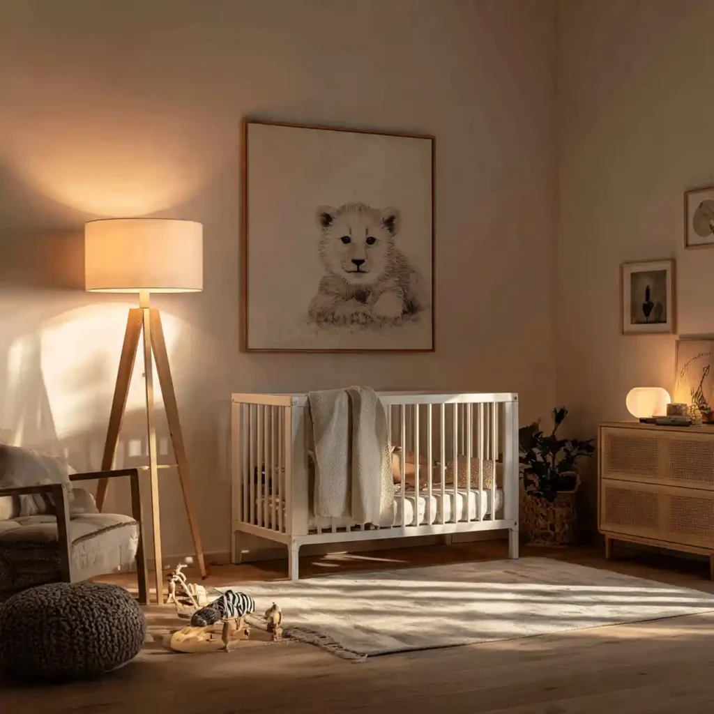 Warm ambient lighting creates a soothing environment, especially during nighttime. Using lamps instead of harsh ceiling lights keeps the space gentle. Soft lighting enhances textures and colors. It makes the room feel safe and calm. This is essential for a relaxing nursery atmosphere.