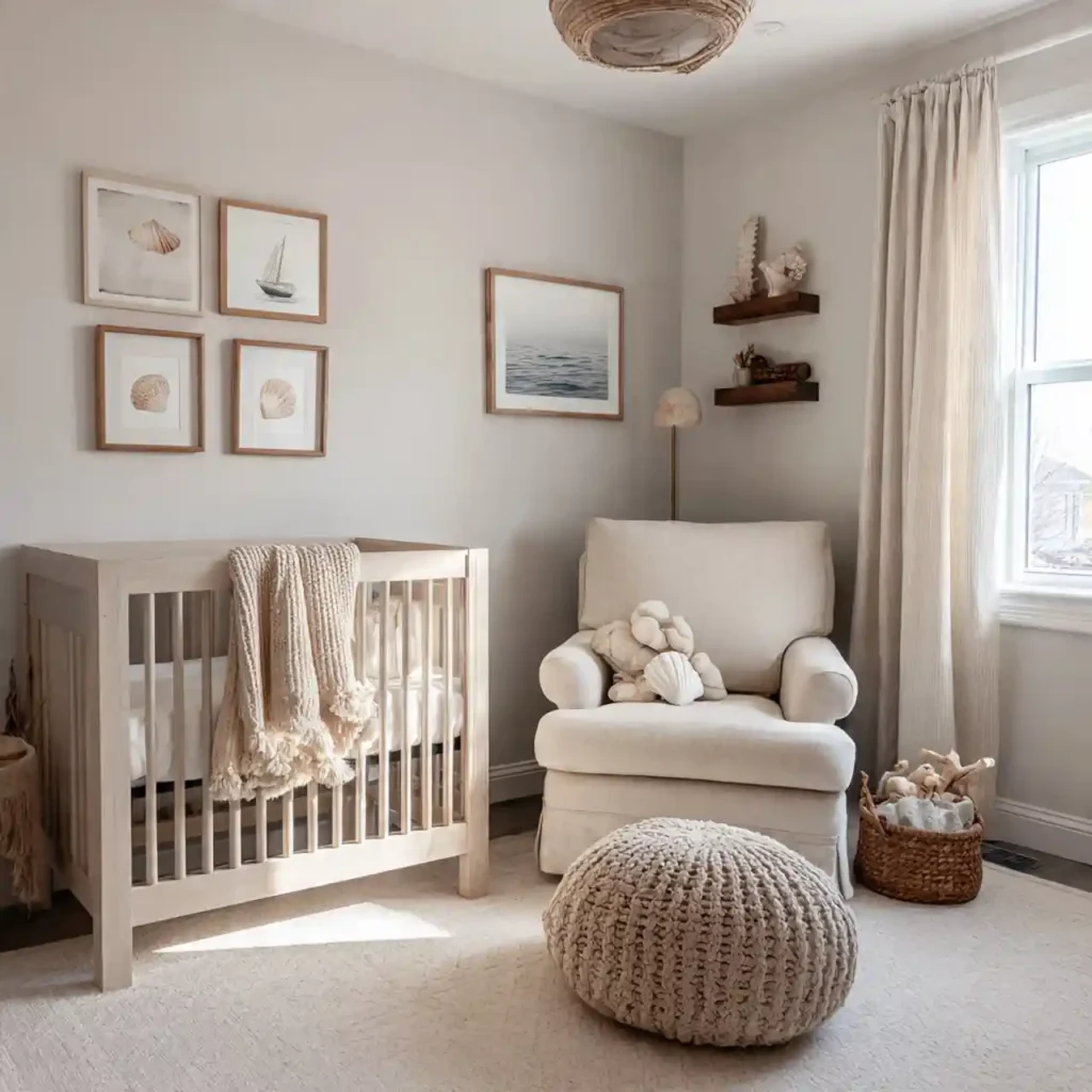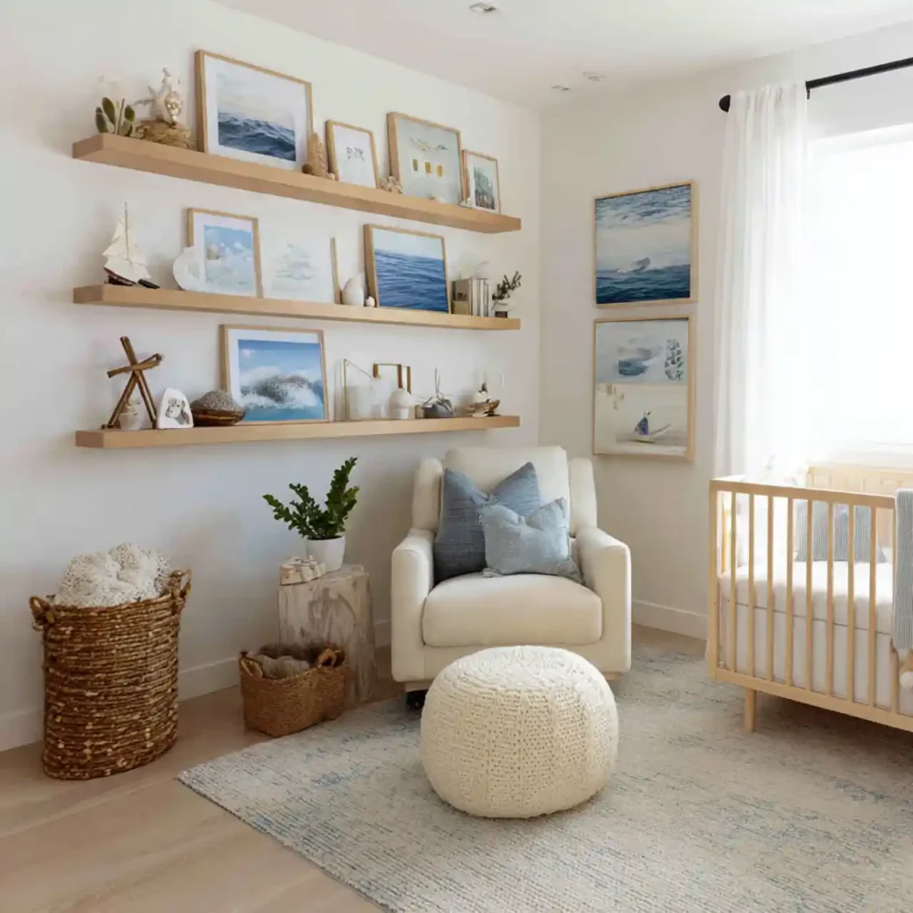 Keeping decor minimal helps maintain a calm and clutter-free environment for your baby. Small ocean-inspired items like shells or simple artwork can add personality without overcrowding the space. Each piece should feel intentional and well-placed. Clean surfaces allow the room to feel open and breathable. This approach creates a peaceful and balanced nursery.