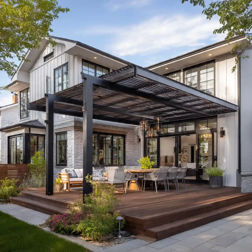 Installing a pergola gives the house a luxury touch. It creates a comfortable outdoor seating area. Wooden or metal pergolas add architectural beauty. Shade structures improve outdoor usability. This upgrade increases lifestyle value.