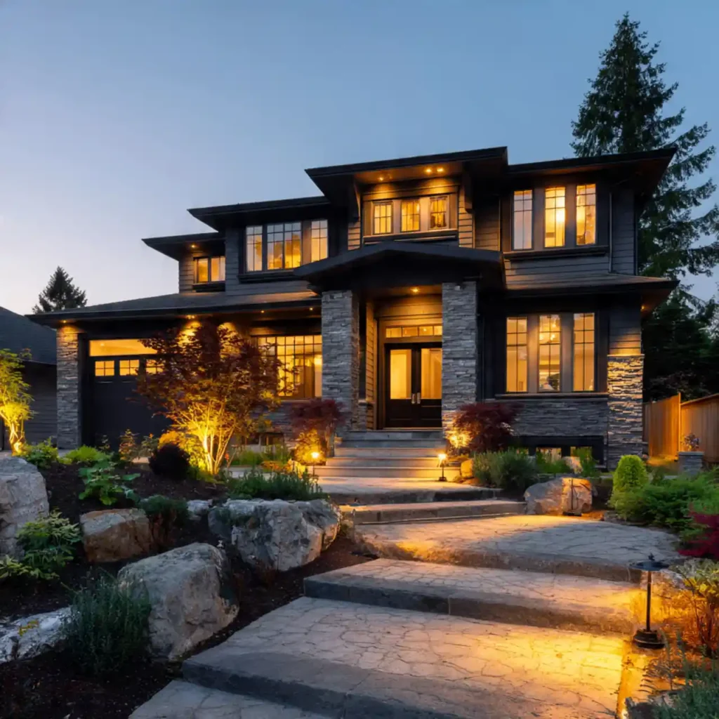 New exterior lighting improves safety and beauty. Wall lights, pathway lights, and spotlights highlight architectural features. Warm lighting creates a cozy welcoming atmosphere. LED fixtures save energy and last longer. Nighttime appearance of the house becomes elegant and modern.