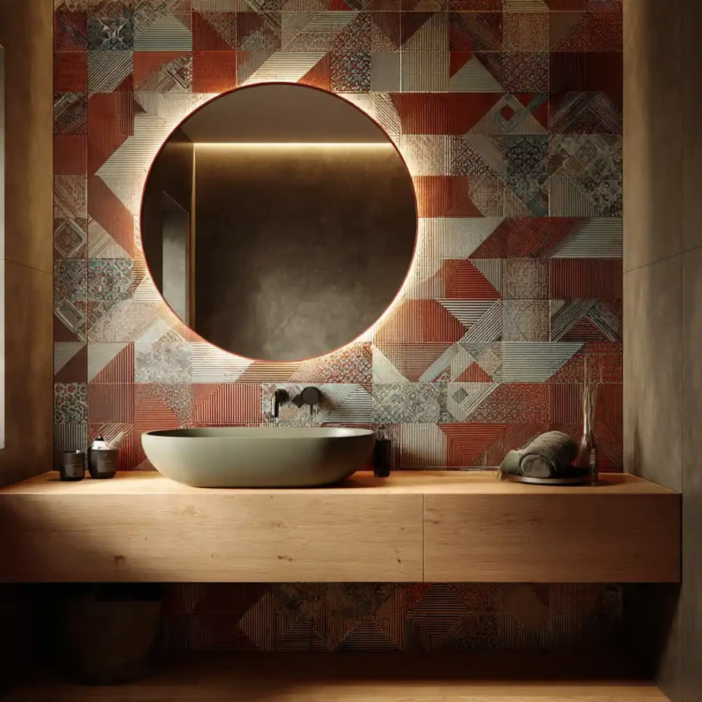 Statement tile designs in bathrooms or kitchens add artistic flair. Geometric or patterned tiles create visual rhythm. They turn functional areas into design highlights. Bold tiling prevents spaces from feeling ordinary. It adds personality through pattern and texture.