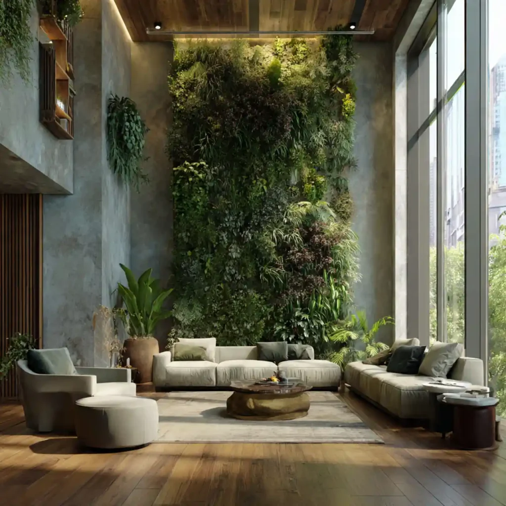 Vertical plant walls introduce nature in a dramatic way. They improve air quality and visual freshness. Green walls create a biophilic design effect. This feature makes interiors feel alive and vibrant. It transforms sterile spaces into organic sanctuaries.