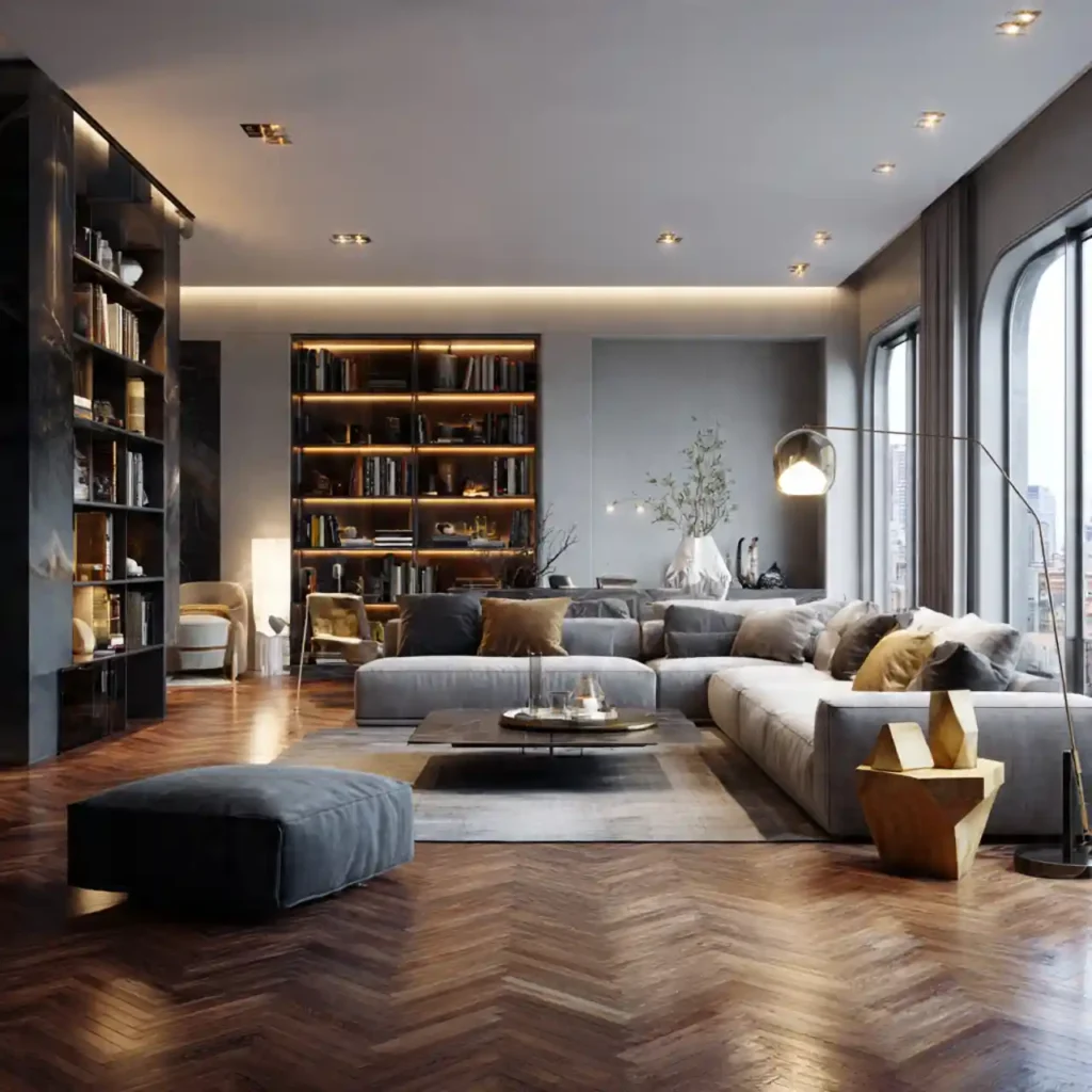 Herringbone or patterned flooring creates visual interest instantly. It adds movement and sophistication to the ground plane. Unique flooring turns simple rooms into dynamic spaces. It enhances the overall design story. Statement floors ground the interior beautifully.