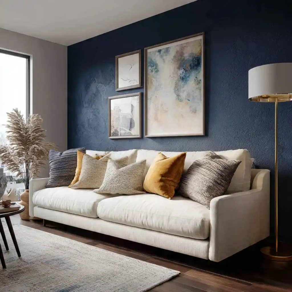 A statement accent wall draws attention and anchors the room visually. Whether created with textured paint, wallpaper, stone, or wood paneling, it becomes the focal point. Dark tones like charcoal, navy, or deep green add sophistication. Accent walls add personality without overwhelming the entire room. They are a cost-effective transformation tool.