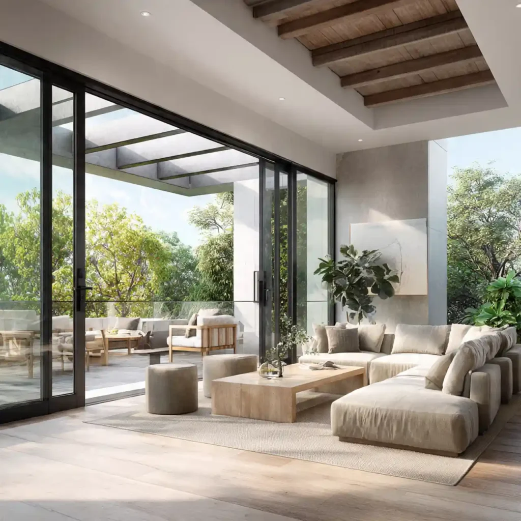 Sliding glass doors or courtyard-style layouts create seamless transitions. They expand the visual space dramatically. Indoor-outdoor flow enhances lifestyle and openness. It brings natural light and fresh air inside. This statement feature transforms how the home feels and functions.