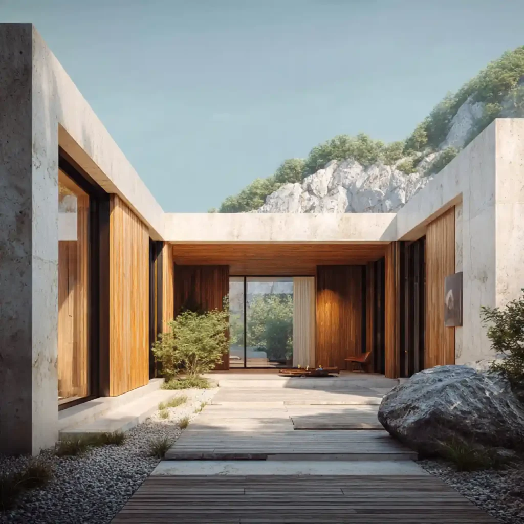5. Contemporary Stone and Wood Minimal House