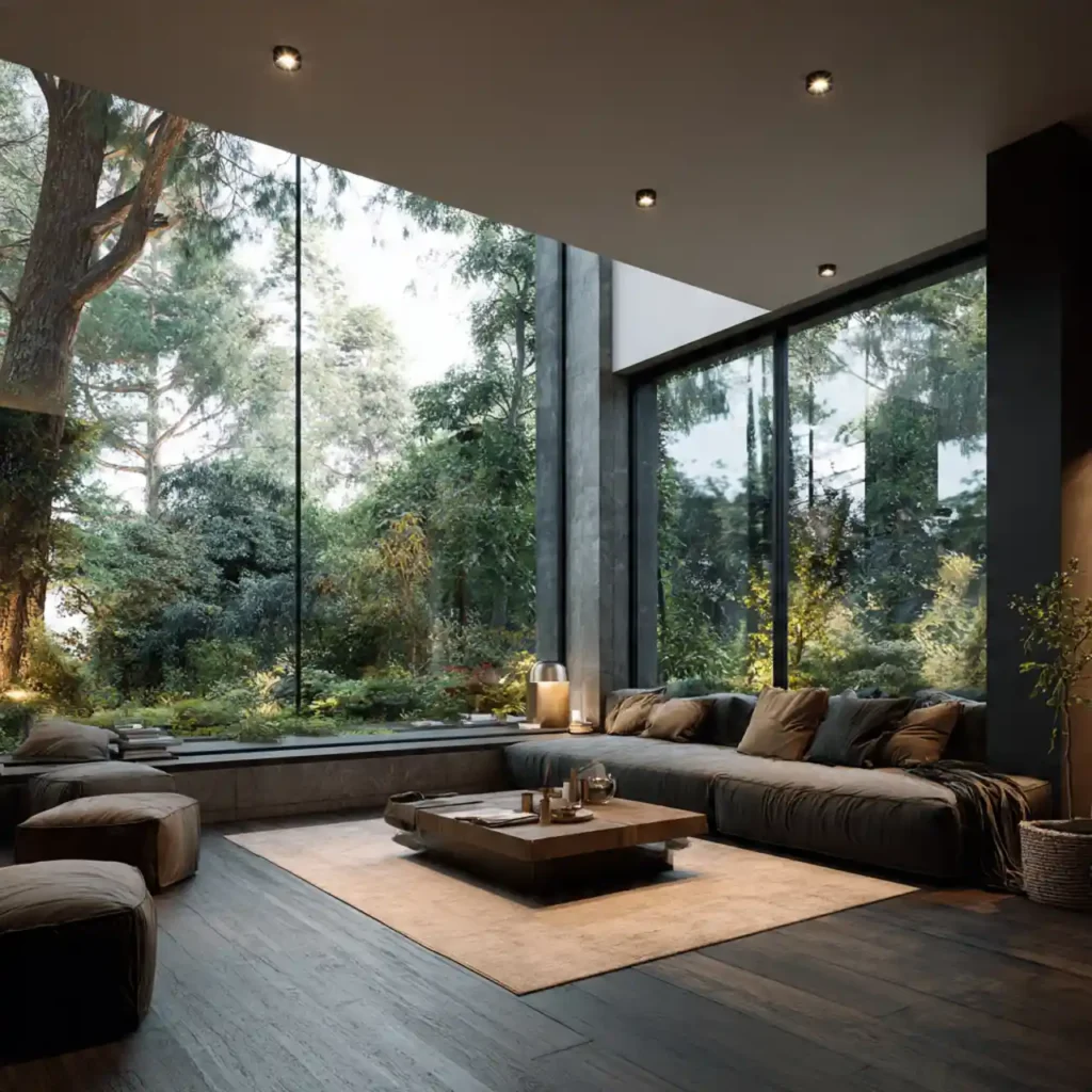 Positioning the pit near glass walls enhances natural light. Outdoor views become part of the interior experience. The open surroundings make the space feel larger. Neutral seating keeps the design balanced. This idea feels modern and refreshing.